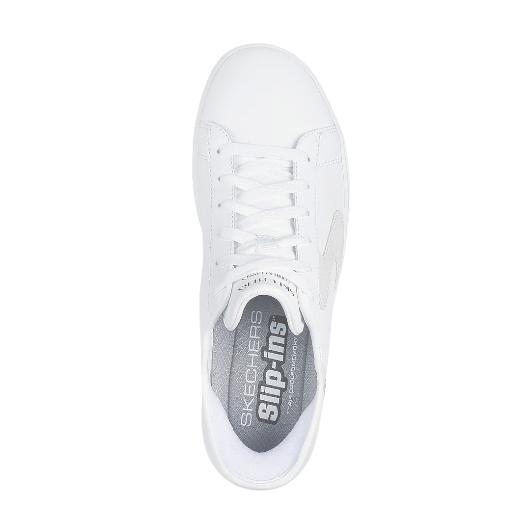 Simply step into comfort with Skechers Hands Free Slip-ins®: Eden LX - Strando. Designed with our exclusive Heel Pillow™, this lace-front slip-on features a synthetic duraleather upper with a Skechers Slip-ins® TOUCHLESS FIT® molded heel panel, and a cushioned Skechers Air-Cooled Memory Foam® insole.